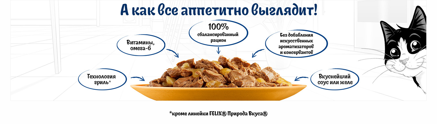 Среди такого разнообразия продуктов бренда FELIX® вы точно сможете подобрать любимое блюдо для настоящих любителей вкуснятины.