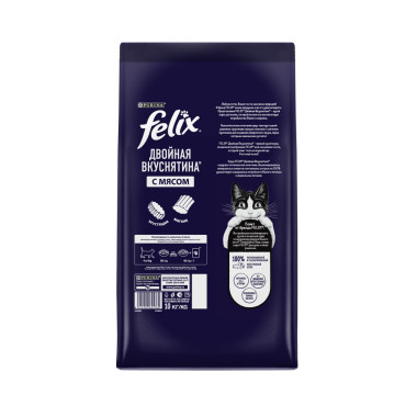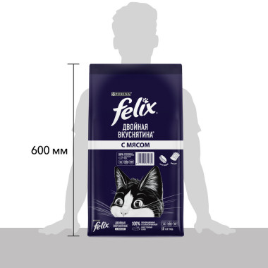 Любопытство Вашего кота заложено природой! И бренд FELIX® снова придумал, как его удовлетворить. Представляем FELIX® Двойная Вкуснятина® – сухой корм для кошек, который полностью соответствует потребностям Вашего озорника. Восхитительное сочетание двух текстур в одной упаковке: хрустящие гранулы смешаны с мягкими кусочками для создания невероятного вкуса, перед которым невозможно устоять! FELIX® Двойная Вкуснятина® – первый сухой корм, созданный под брендом FELIX® для находчивого кота, который знает толк во вкусной еде. И это еще не все! Корм FELIX® Двойная Вкуснятина® содержит оптимальное сочетание сбалансированных минеральных веществ и витаминов, которые на 100% удовлетворят ежедневные потребности Вашего питомца в правильном питании.