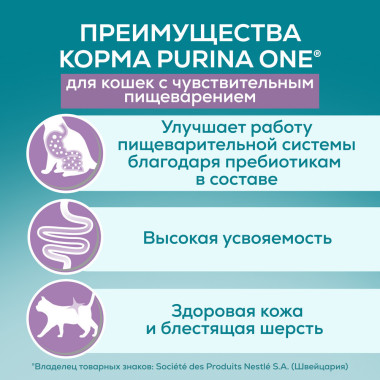 Корм консервированный полнорационный сбалансированный Purina ONE® (Пурина Уан) специально разработан ветеринарными врачами и диетологами Нестле Пурина ПетКэр. Корм Purina ONE® (Пурина Уан) — это сочетание отличного вкуса и гарантия пользы. Вы можете быть уверены, что с кормом Purina ONE® (Пурина Уан) Ваша кошка получит питание высокого качества с отличным вкусом для поддержания ее здоровья.