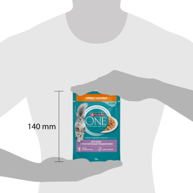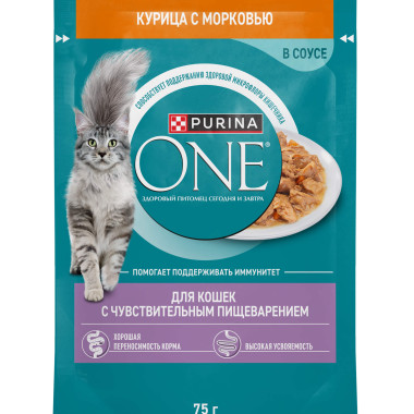 Влажный корм Purina ONE® для кошек с чувствительным пищеварением, с курицей и морковью, пауч, 75г