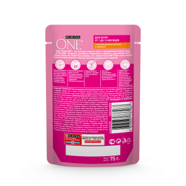 Влажный корм Purina ONE® для котят, с курицей и морковью, Пауч, 75 г