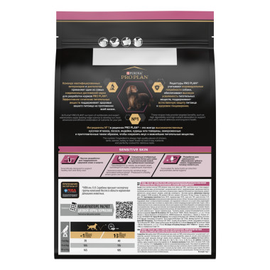 Изучая потребности собак на протяжении многих лет, команда квалифицированных ветеринарных специалистов и диетологов PURINA разработала сухой корм PRO PLAN® Sensitive skin - ежедневный рацион с высоким содержанием лосося для собак мелких и карликовых пород.. Этот полнорационный корм полностью сбалансирован по составу и помогает поддерживать здоровье чувствительной кожи.