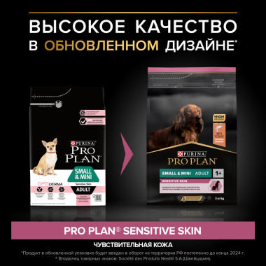 Корм сухой для собак мелких и карликовых пород собак PRO PLAN® Sensitive skin — это полюбившийся PRO PLAN® Opti Derma с новым названием, но с прежним составом и качеством.