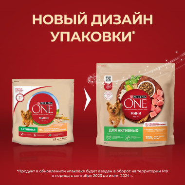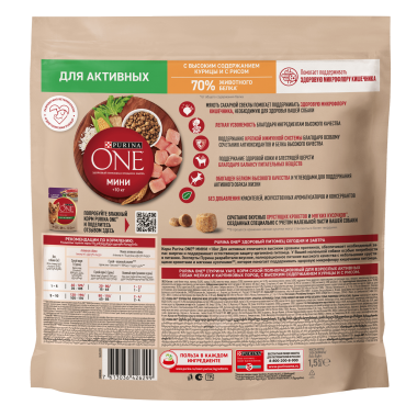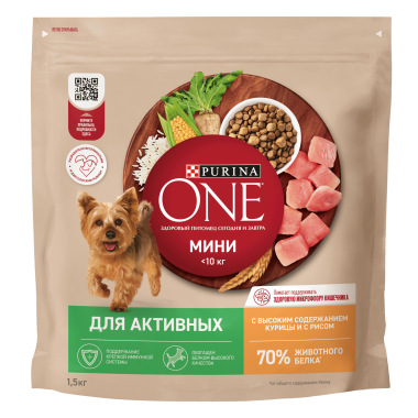 У Вашей маленькой собаки особые потребности в питании. Поэтому эксперты Пурина разработали корм Purina ONE® (Пурина Уан) МИНИ. Это высококачественное, вкусное питание, с сочетанием небольших хрустящих крокетов и мягких кусочков*, созданное с учетом небольших размеров пасти собаки. Корм Purina ONE® (Пурина Уан) МИНИ Активная с курицей отличается высоким уровнем протеинов, которые обеспечивают необходимый запас энергии и поддержание крепкой иммунной системы.Начните кормить Вашу собаку кормом Purina ONE® (Пурина Уан) МИНИ и оцените видимый результат улучшения ее здоровья.*В процессе хранения мягкие кусочки могут становиться более твердыми.