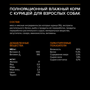 - Разнообразие вкусов: попробуйте влажные корма PRO PLAN® для взрослых собак с курицей, говядиной или уткой.