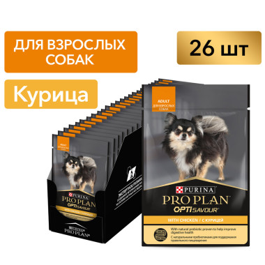 Влажный корм PRO PLAN® для взрослых собак мелких и карликовых пород, с курицей в соусе , 85 г х 26 шт