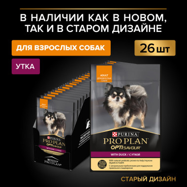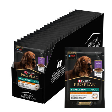 Влажный корм PRO PLAN® для взрослых собак мелких и карликовых пород, с уткой в соусе, 85 г х 26 шт