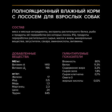 Разработанный нашими ветеринарными врачами и диетологами влажный корм для взрослых собак обеспечивает самое современное питание, которое оказывает долгосрочное влияние на здоровье собаки. Влажные корма PRO PLAN® для чувствительного пищеварения со вкусом лосося обеспечивают высокую усвояемость питательных веществ, поддерживают естественную защиту питомца и здоровое пищеварение. Комбинируйте влажные и сухие корма PRO PLAN® для разнообразия в питании вашего питомца и поддержания здорового водного баланса.
