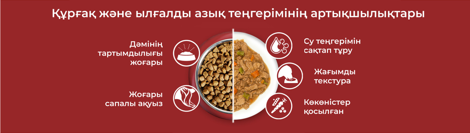 Үй жануарыңыздың қажеттіліклерін ескере отырып жасалған дымқыл азықтармен құрғақ рационды толықтырып, Purina ONE® брендімен бірге дұрыс тамақтандырыңыз. Азықтандыру нормалары бойынша қаптамадағы ұсыныстарды орындаңыз.