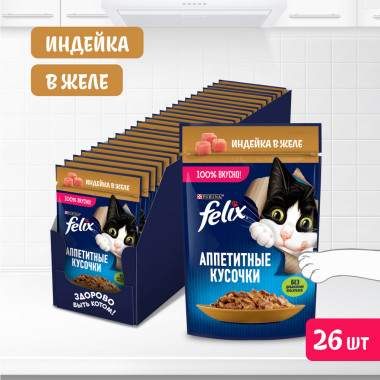 FELIX® Тәбетті кесектер — мүлдем ерекше азық. Оның түрі мен хош иісінің тәбеттілігі соншалықты, Сіз оны өзіңіз дайындағандай сезінесіз. Әрбір қалташасында шырынды желедегі нәзік кесектер бар – мысығыңызды құлағынан тартып сүйреп әкете алмайтын дәмділік. Олар дәмі бойынша сыртқы түріндегідей тәбетті! Азық Сіздің мысығыңыздың күнделікті қажеттіліктерін толығымен қанағаттандыру үшін минералды заттар мен дәрумендердің дұрыс үйлесімі бар қажетті Омега-6 май қышқылдарының көзі болып табылады. Қаптамадағы азықтандыру бойынша ұсыныстарды қолдануыңызды сұраймыз.