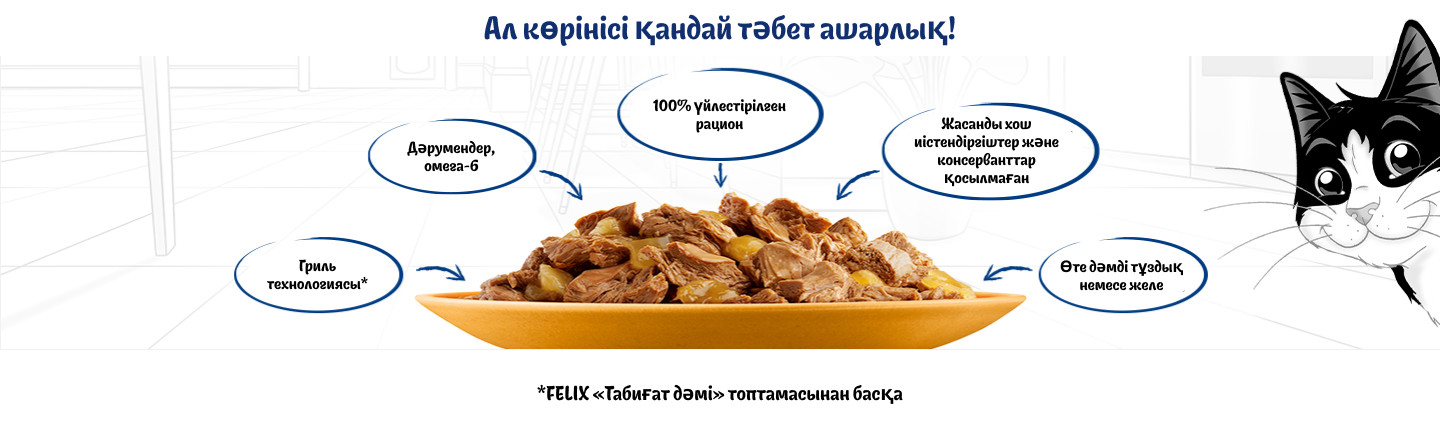 FELIX® брендінің осындай алуан түрлі өнімдерінің арасынан сіз нағыз дәмқойлар үшін сүйікті тағамды таңдай аласыз.